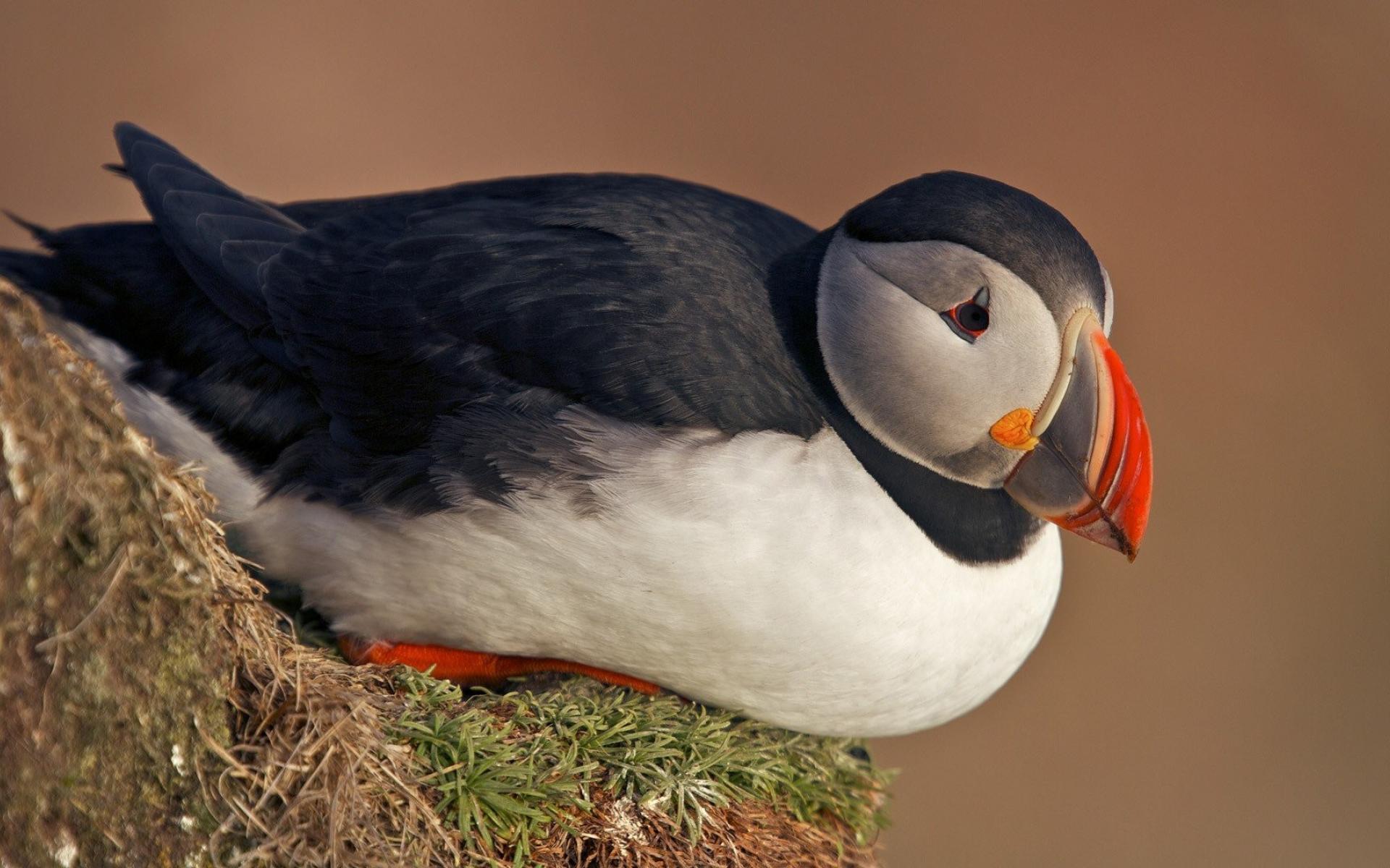 Wallpaper Puffin is sitting on a piece of grass