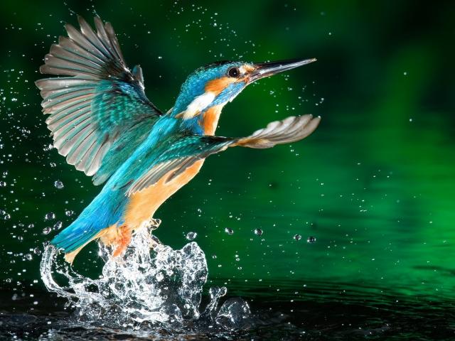 Wallpaper Kingfisher bird in water drops