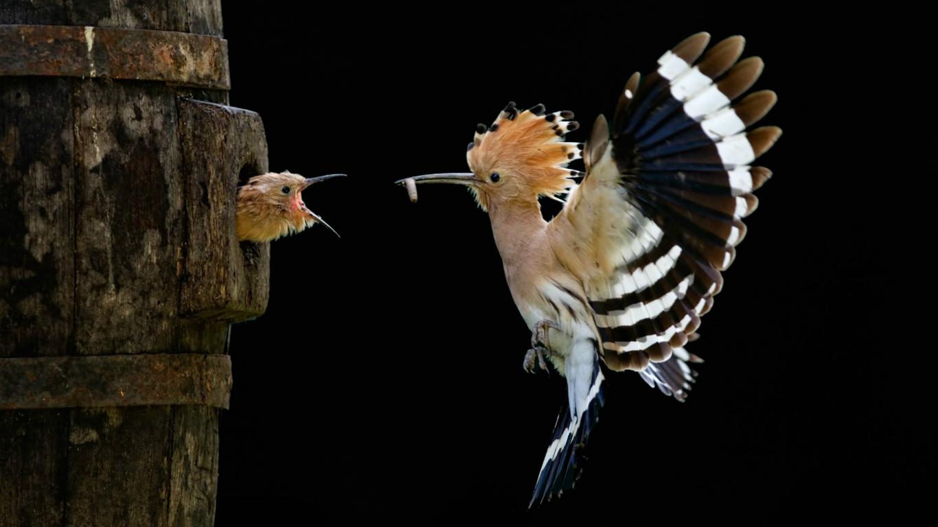 Wallpaper Hoopoe feeding nestlings