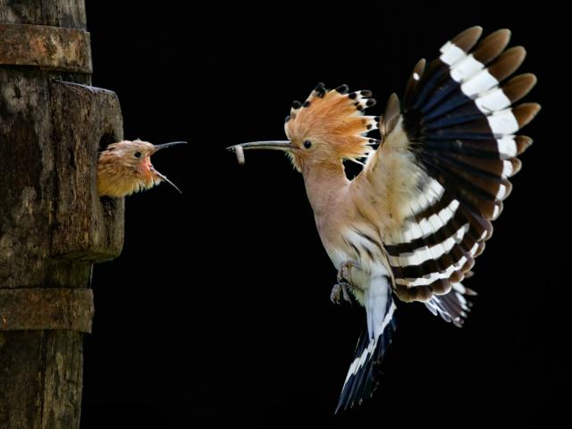 Wallpaper Hoopoe feeding nestlings