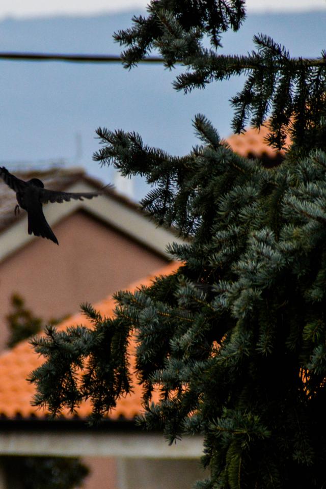 Wallpaper Black bird in flight