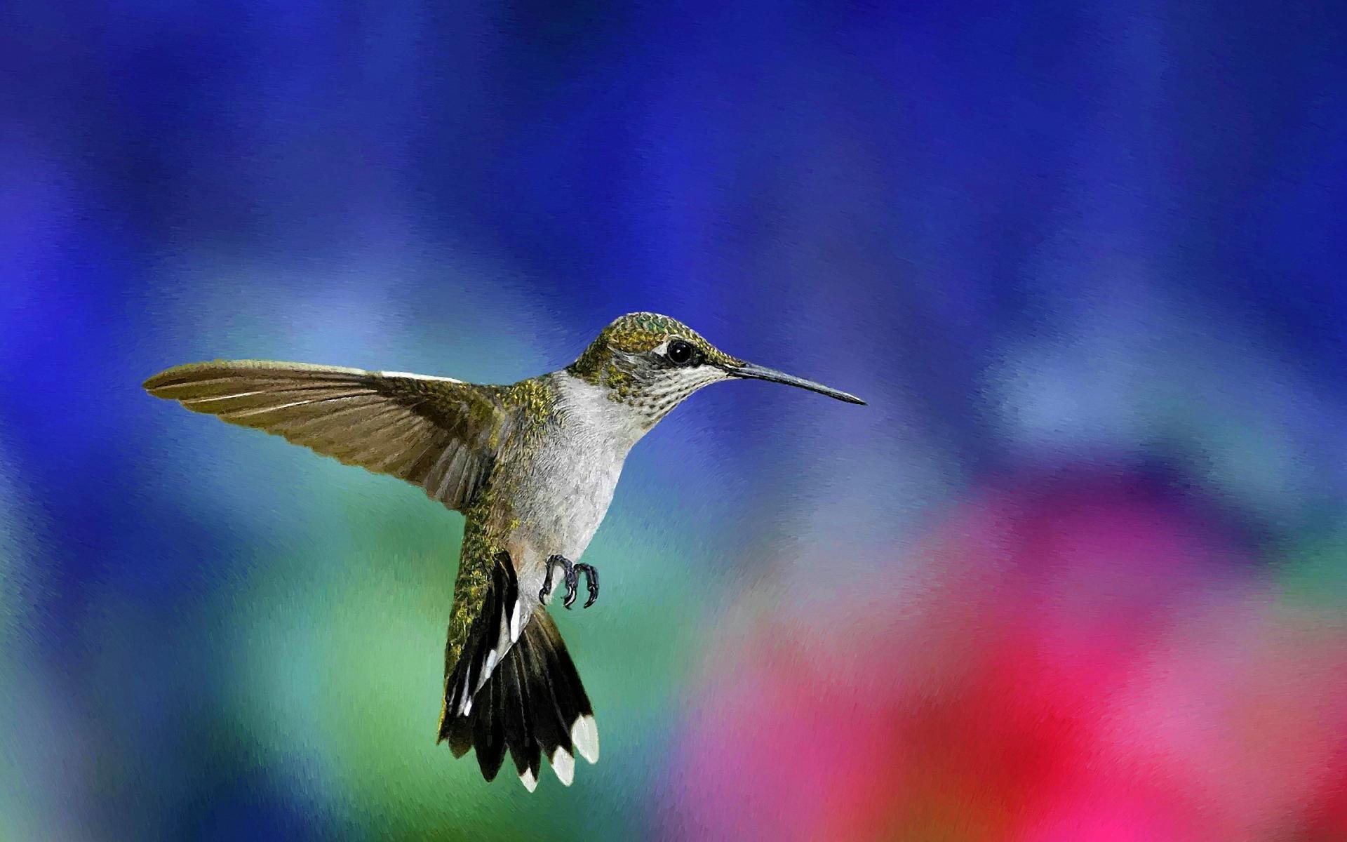 Wallpaper Green hummingbird in the air