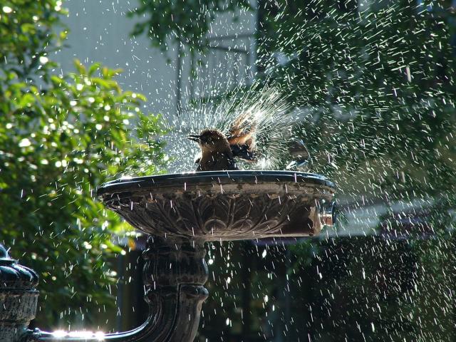 Wallpaper Bird bathes