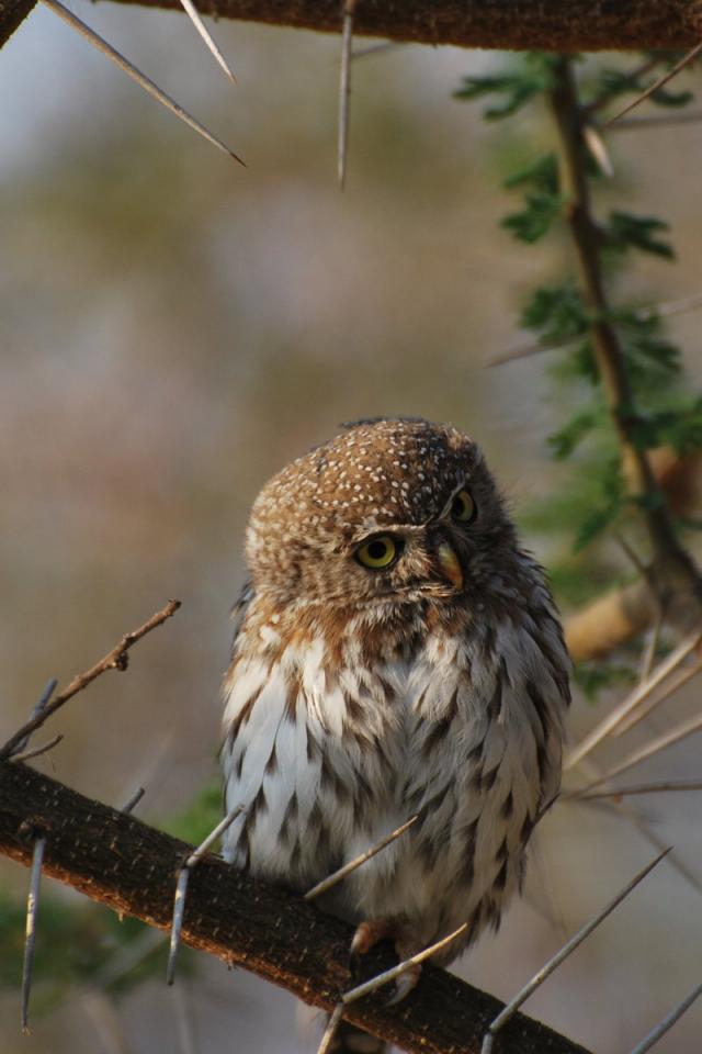 » Wallpaper Owl on a prickly tree