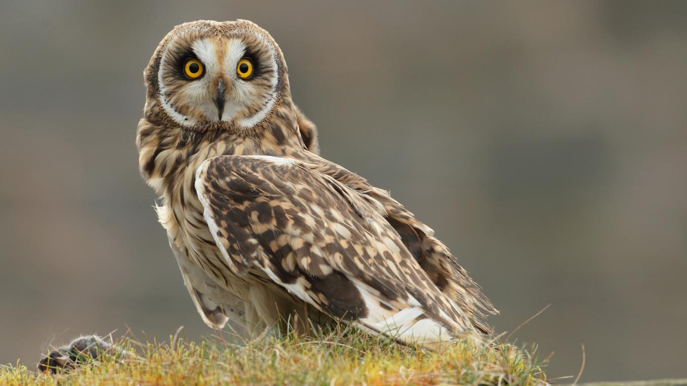 Wallpaper Watchful owl on the grass
