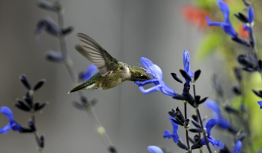Wallpaper Hummingbirds around blue flower