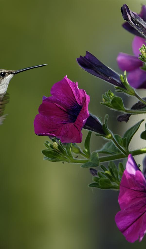 Wallpaper Hummingbird flowers of petunias