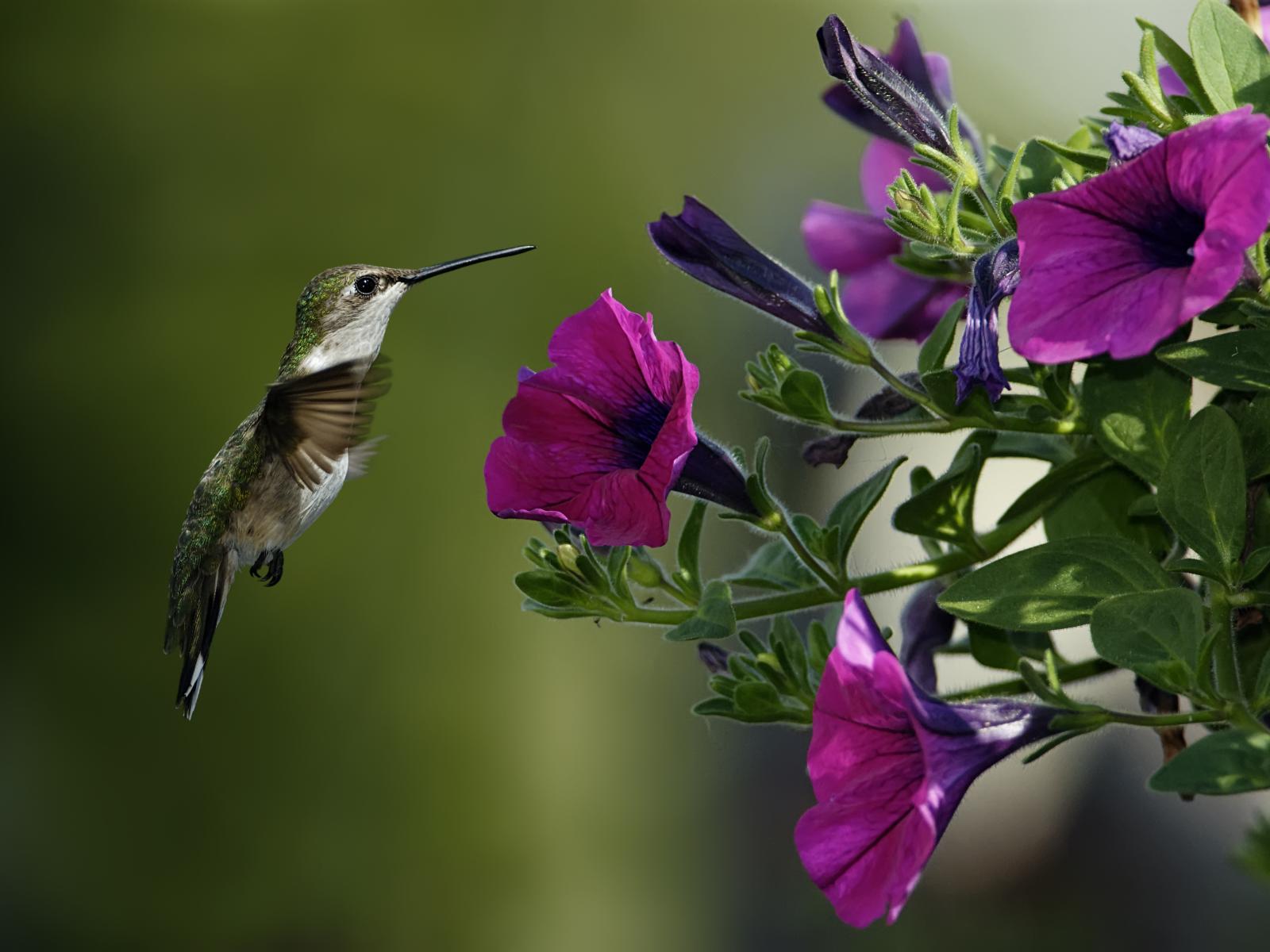 » Wallpaper Hummingbird flowers of petunias