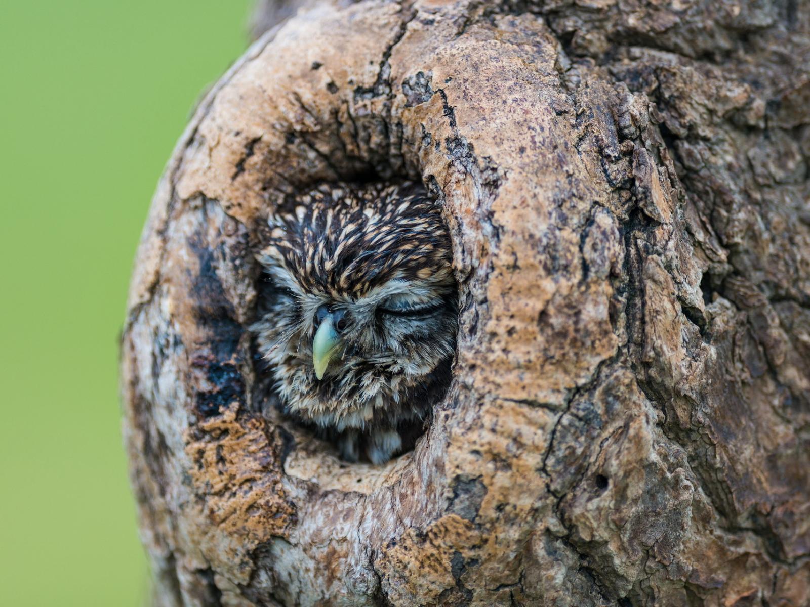 Wallpaper Owl sleeps in a hole
