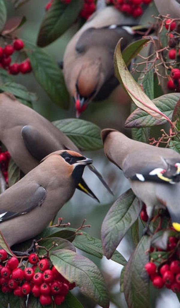 Wallpaper Birds eat berries