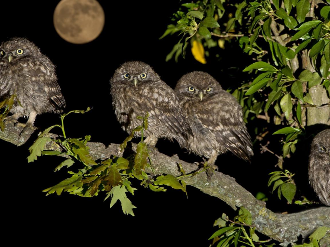 Wallpaper Four owls on the tree