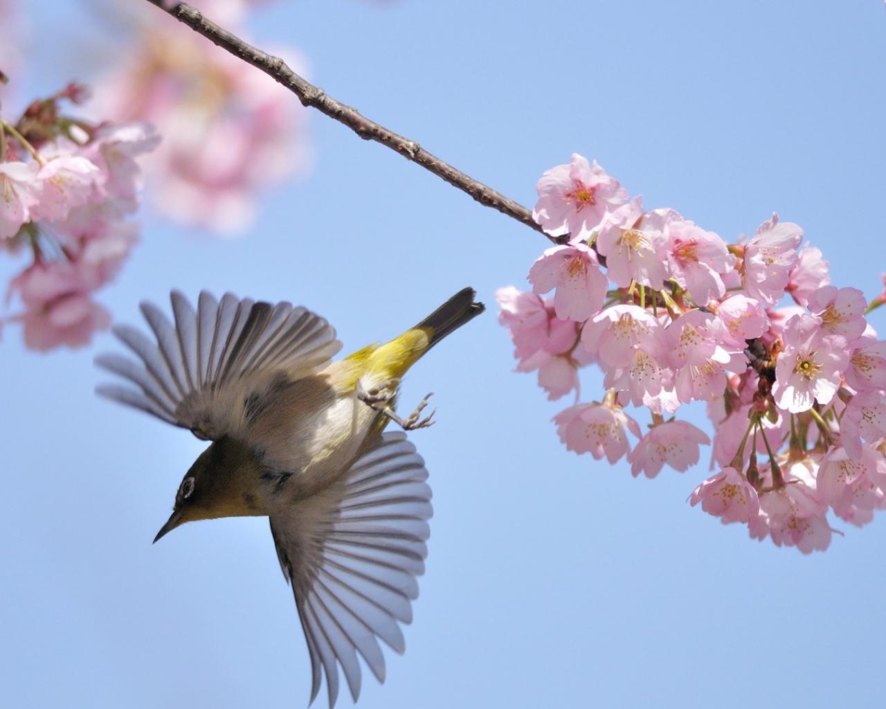 Wallpaper Bird in flowers