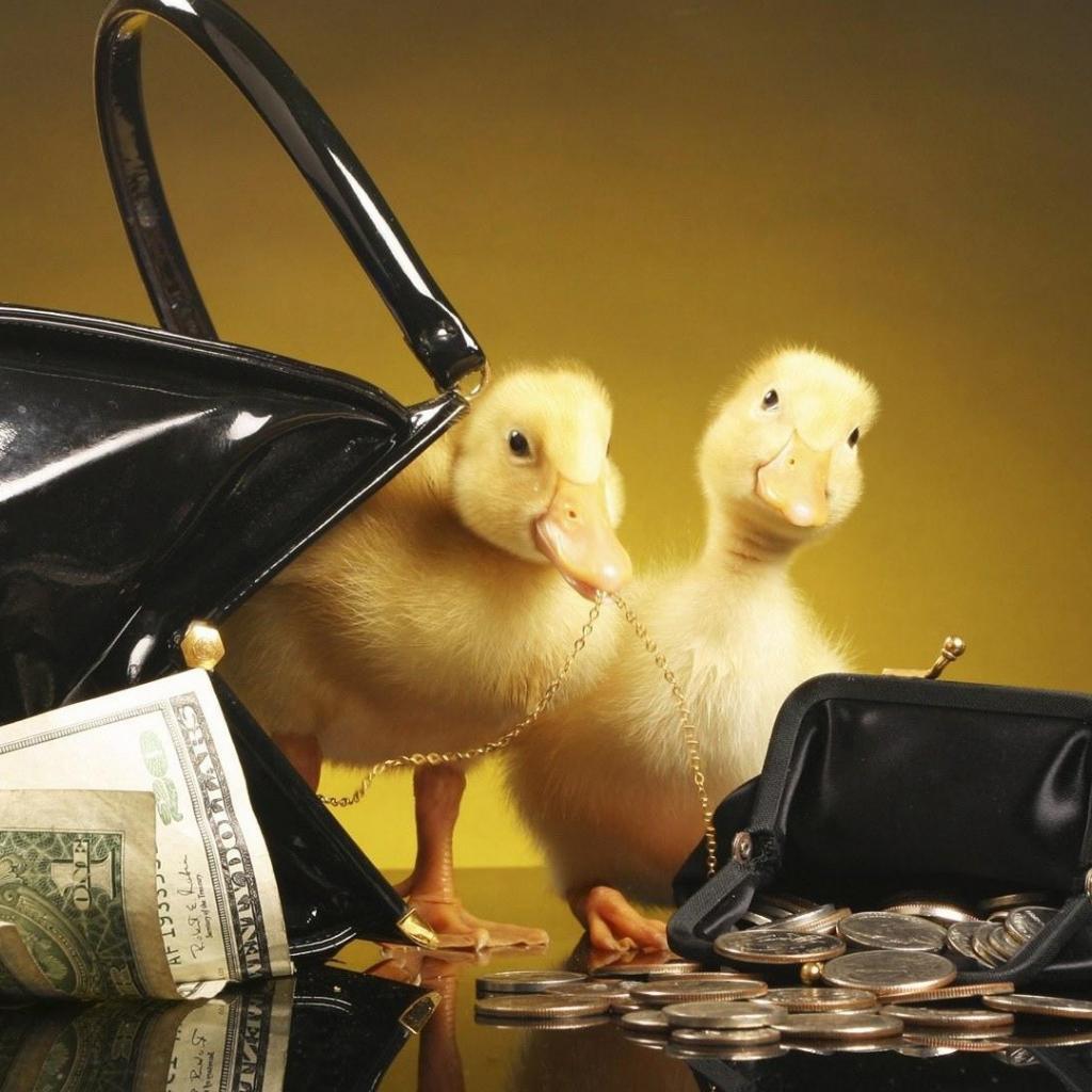 Wallpaper Ducklings in wallets with money