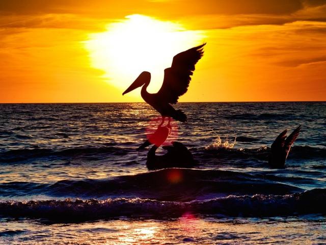 Wallpaper Cormorants at sunset