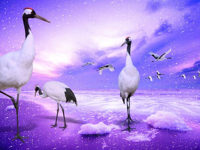 Wallpaper Red crowned cranes japan