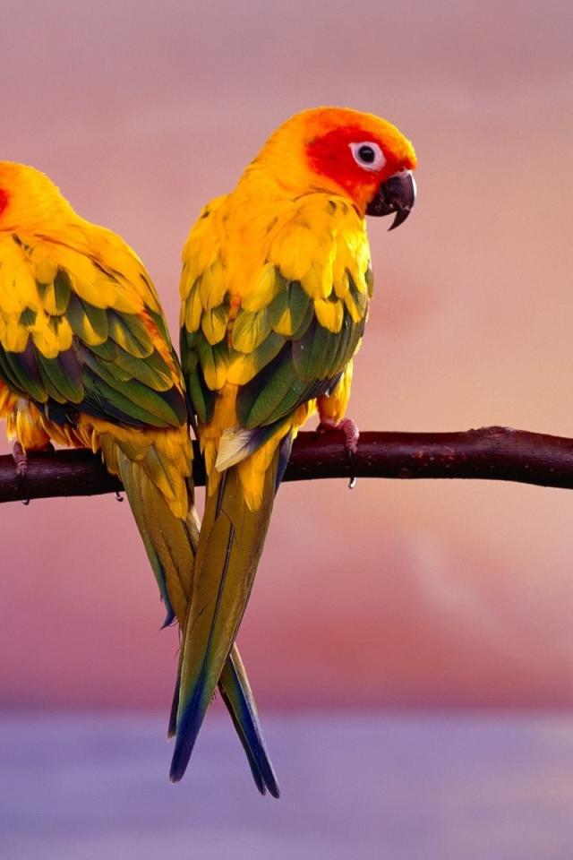 Wallpaper Colorful Parrot under the wing of the other parrot