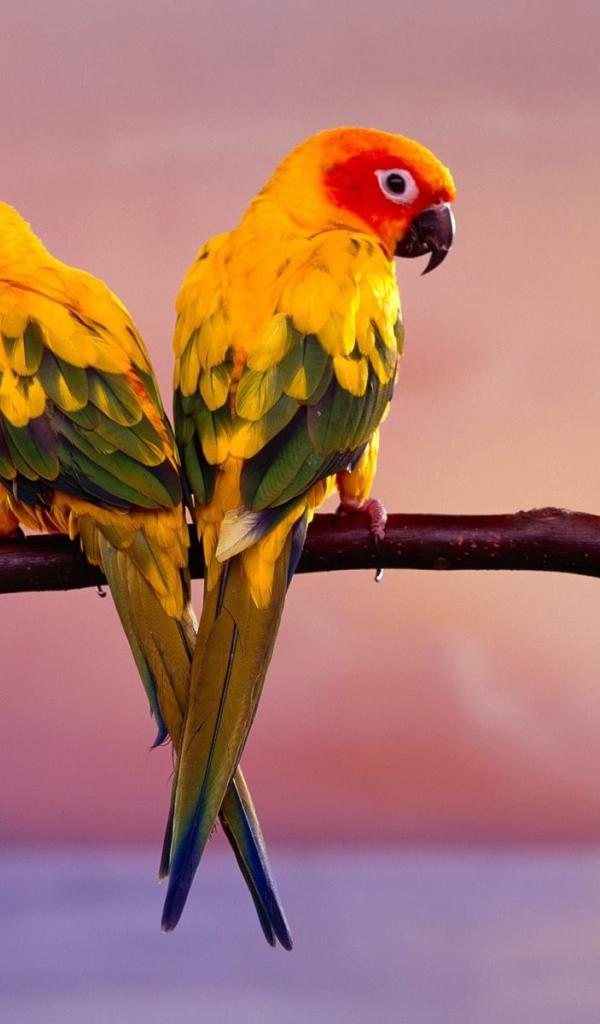 Wallpaper Colorful Parrot under the wing of the other parrot