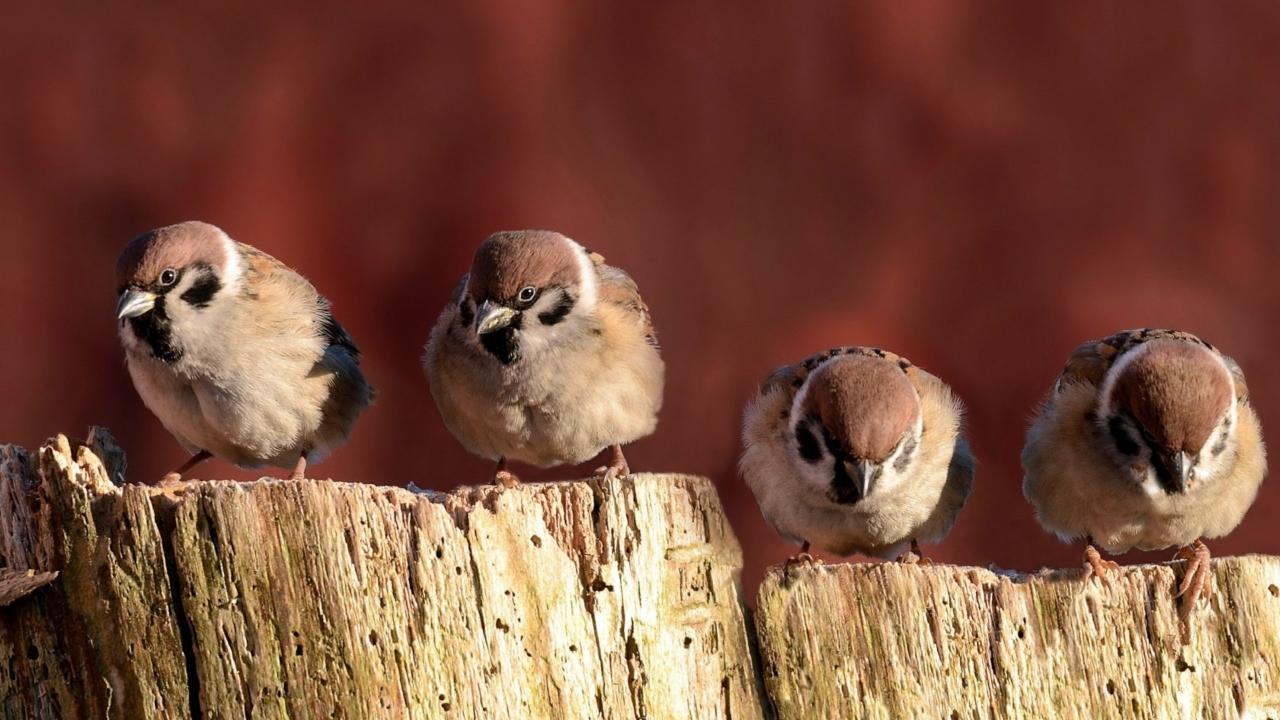 Wallpaper Sparrows sitting on the fence