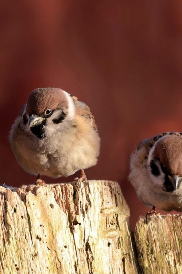 Wallpaper Sparrows sitting on the fence
