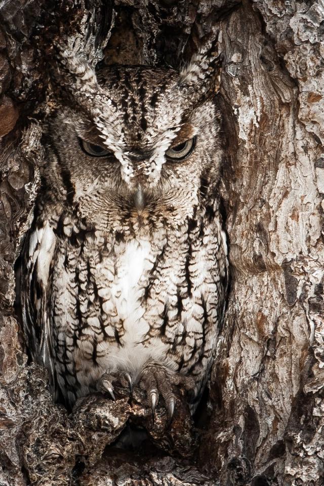 Wallpaper Owl in a hollow tree
