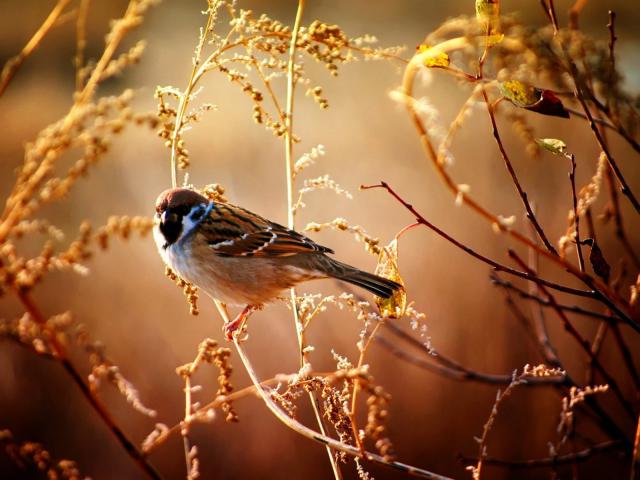 Wallpaper Sparrow sitting on a branch