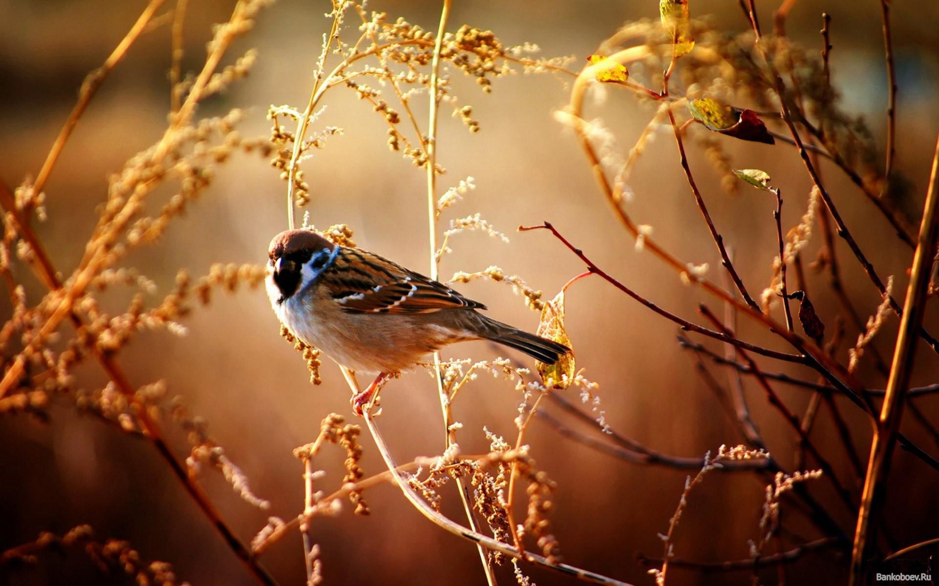 Wallpaper Sparrow sitting on a branch