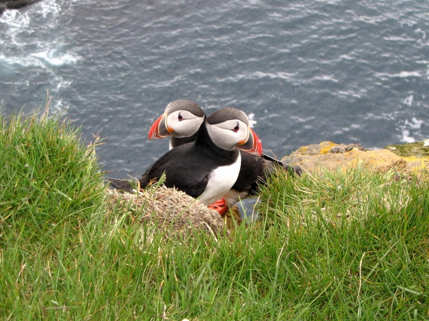 Wallpaper Two birds in the grass