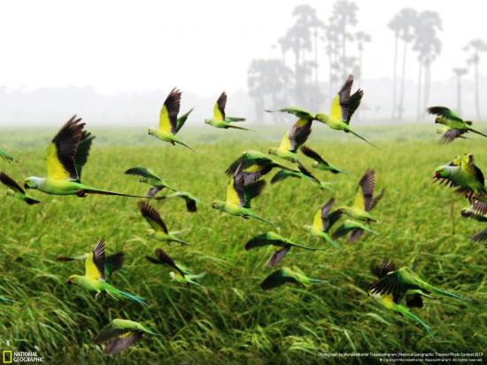 Wallpaper Flies flock of parrots