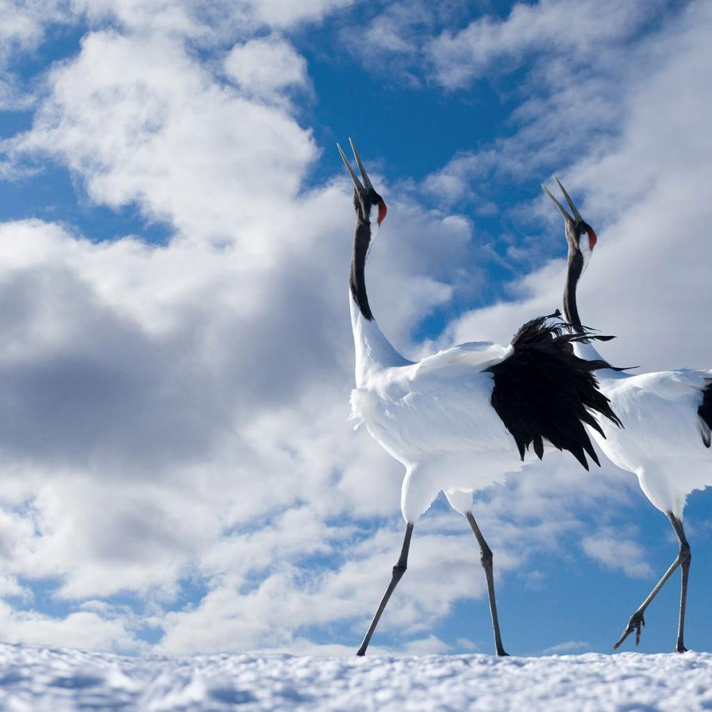 Wallpaper Cranes dancing