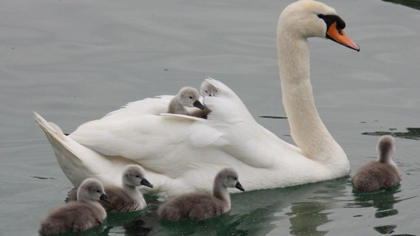 Wallpaper Swan with their children