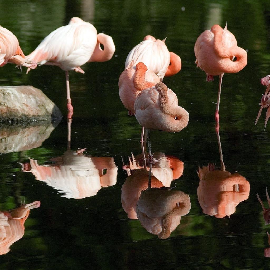 Wallpaper Pink flamingos rest