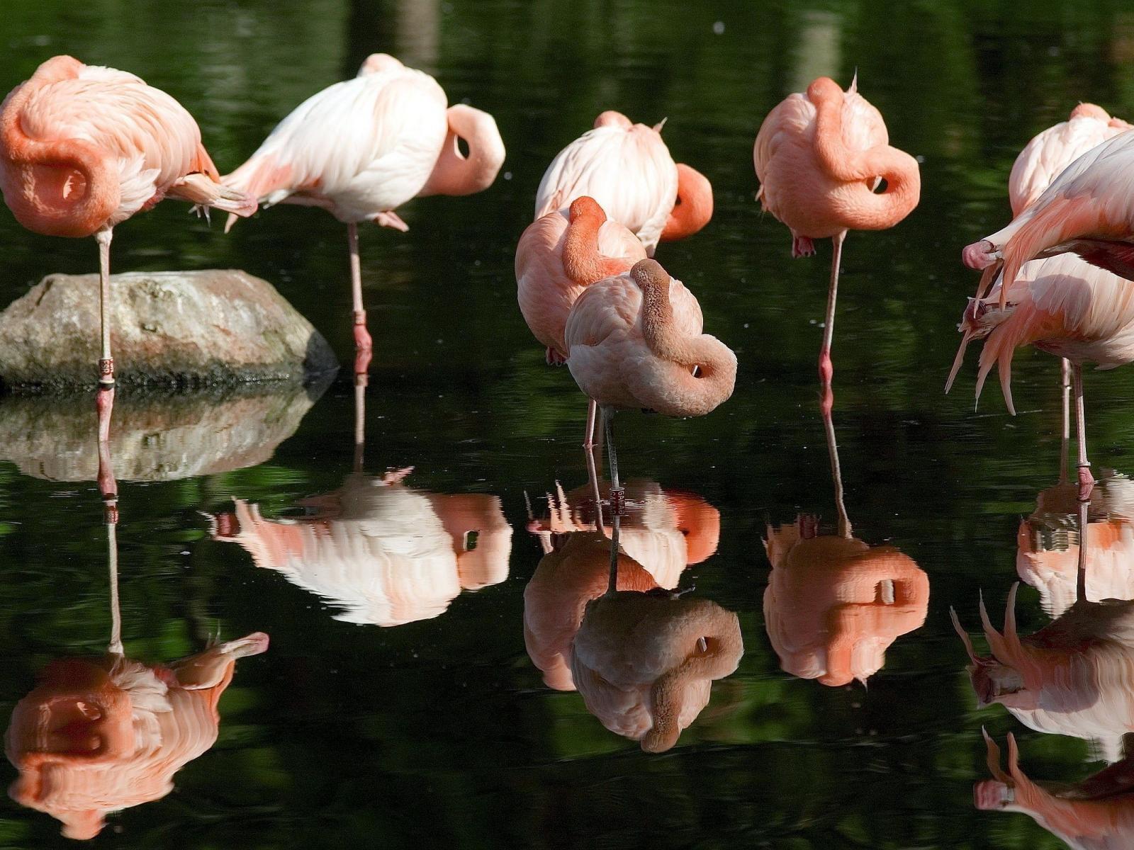 Wallpaper Pink flamingos rest