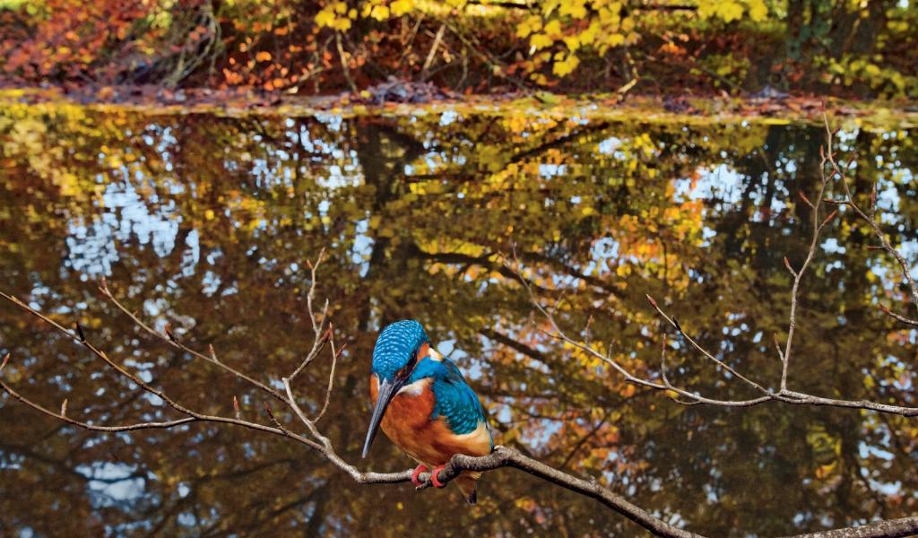 Wallpaper Kingfisher bird sitting on a branch against the backdrop of greenery