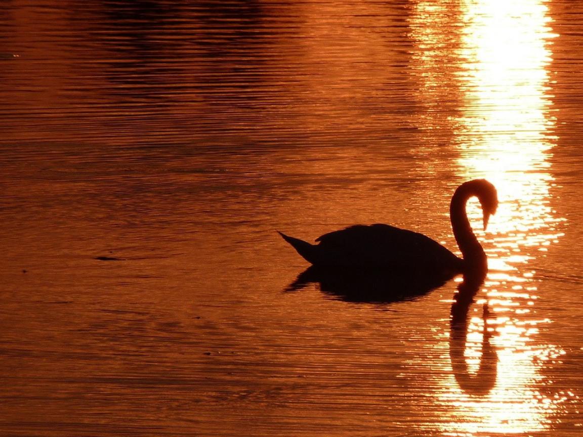 Wallpaper Swan on the Golden sunset