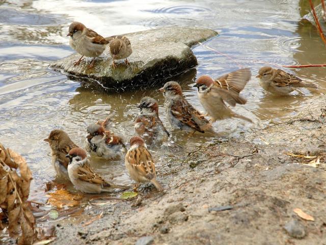 Wallpaper Sparrows bathe