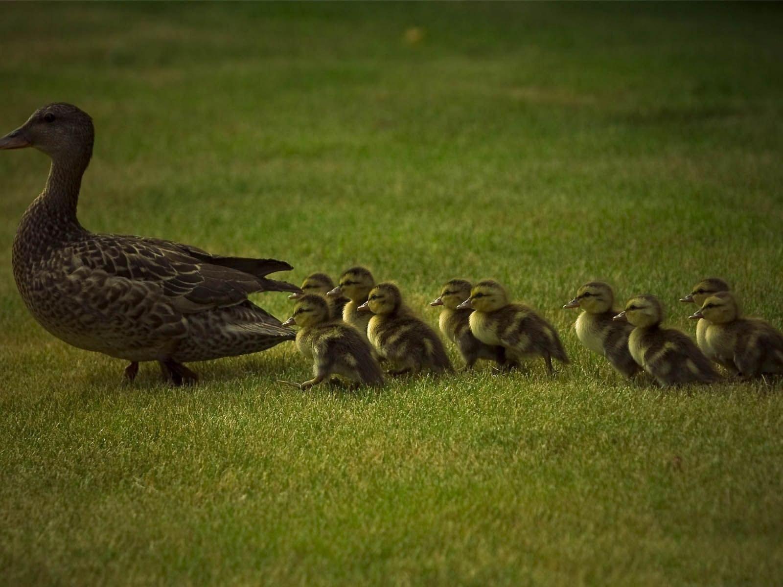 Wallpaper Mother duck and ducklings