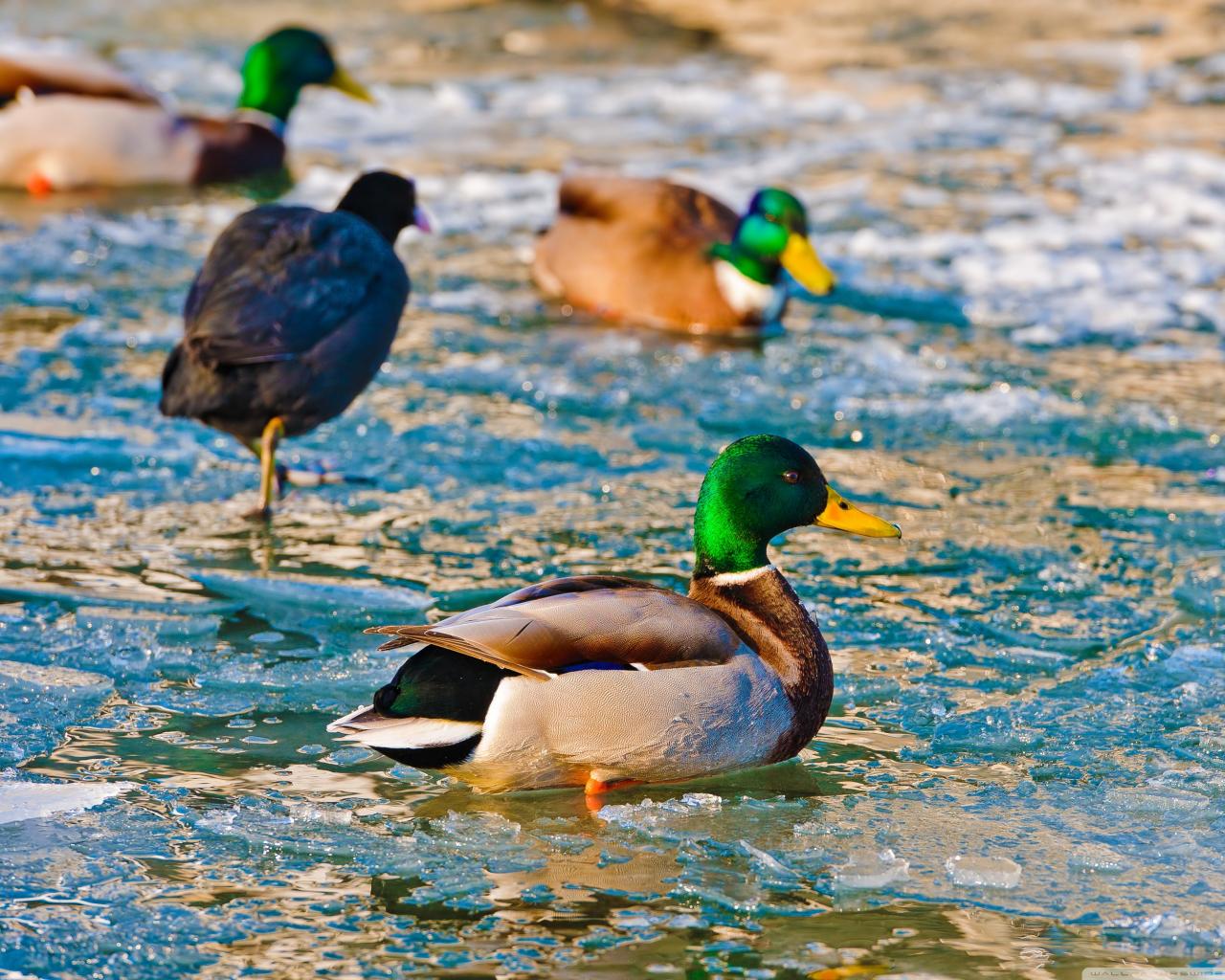 » Wallpaper Ducks in ice water
