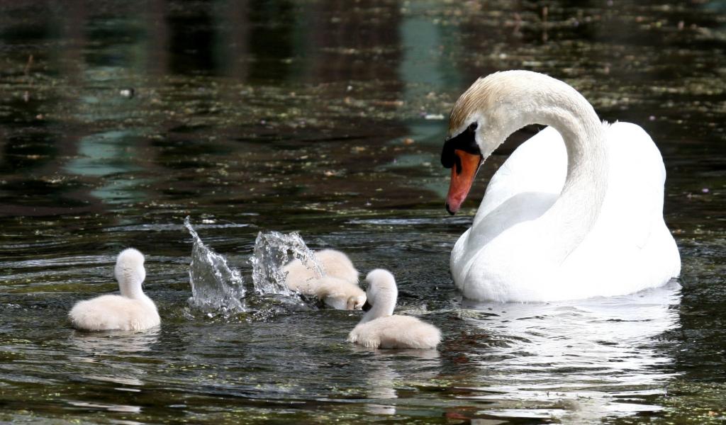Wallpaper Swan with their children
