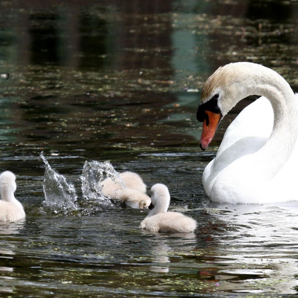 Wallpaper Swan with their children