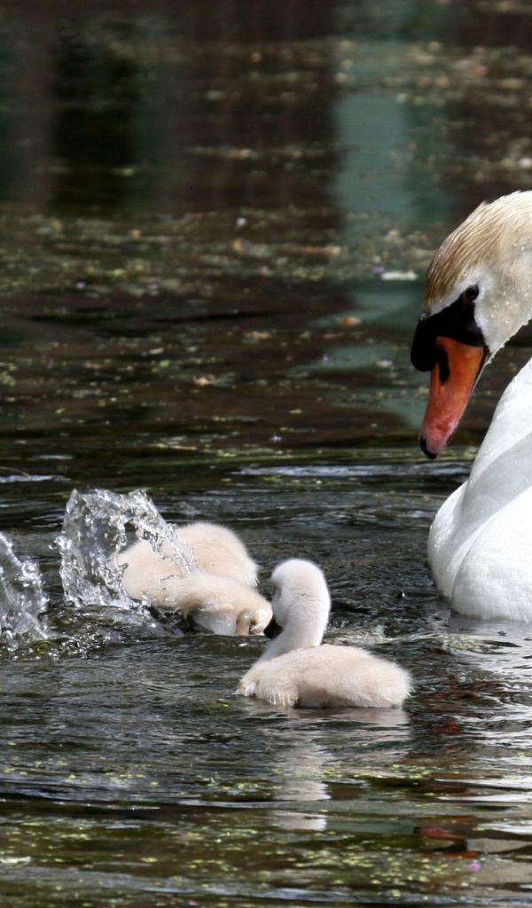 Wallpaper Swan with their children