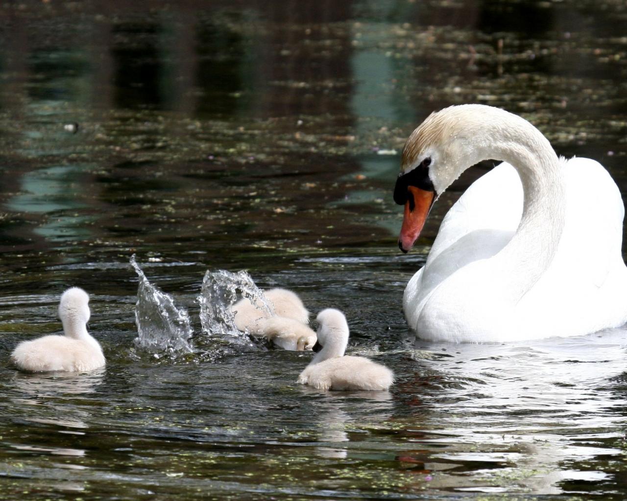 Wallpaper Swan with their children