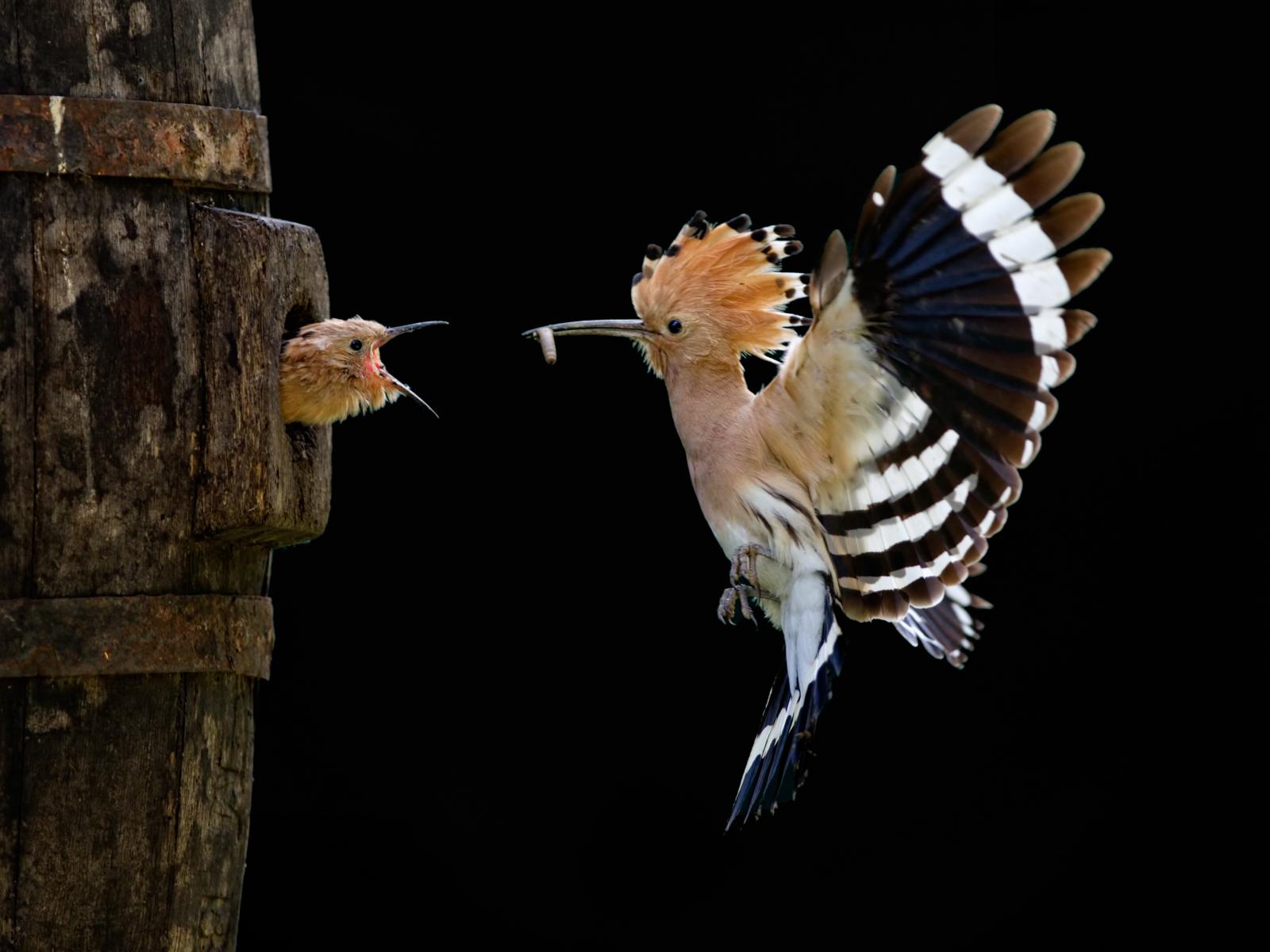 Wallpaper Hoopoe feeding nestlings