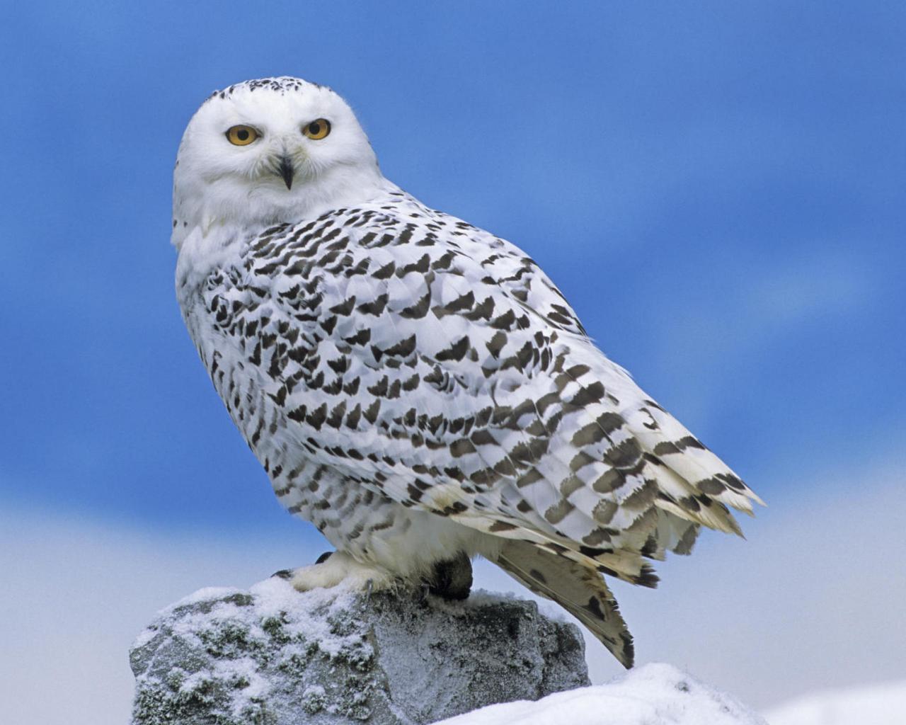 Wallpaper Snowy owl on a rock