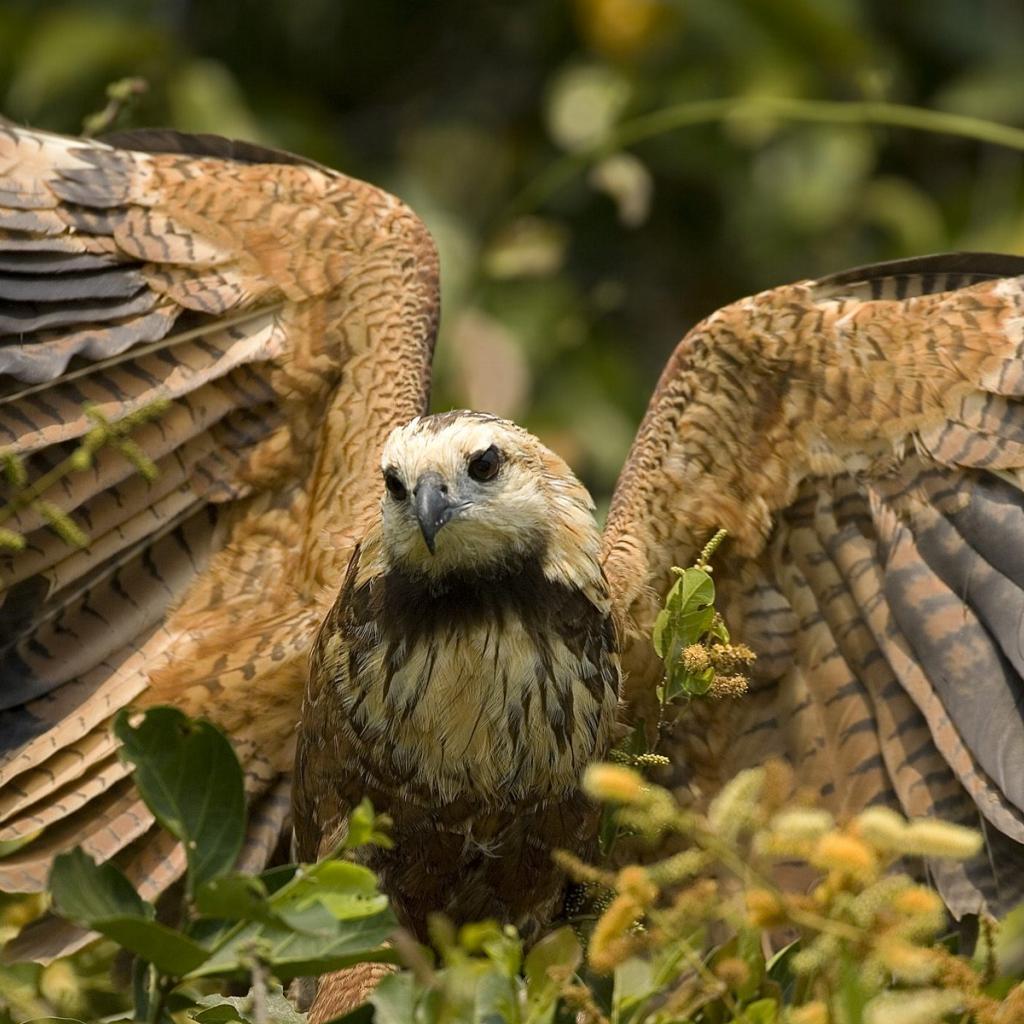 Wallpaper Hawk sat on flowers