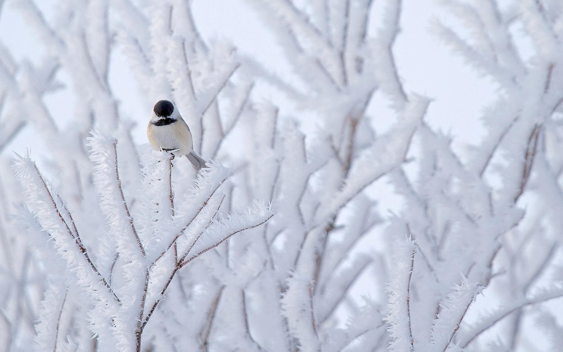 Wallpaper Bird on a frosted branch