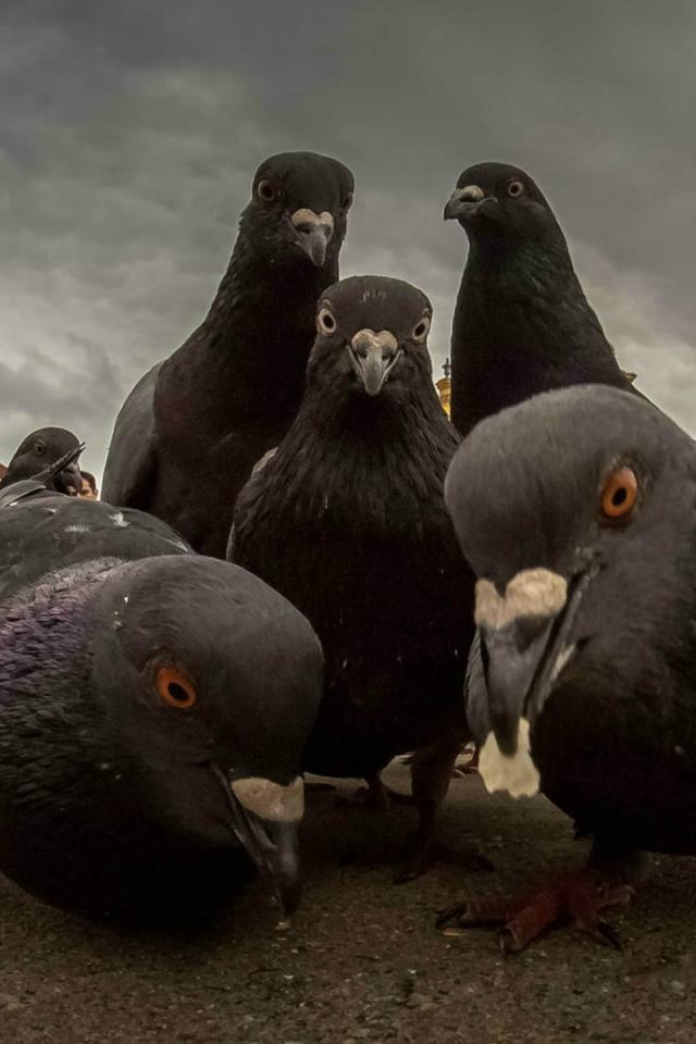 Wallpaper Urban pigeons looking for food