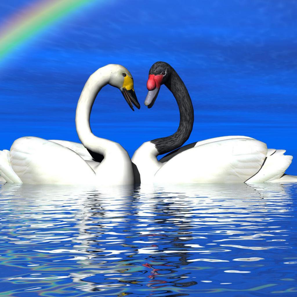 Wallpaper Swans under the rainbow