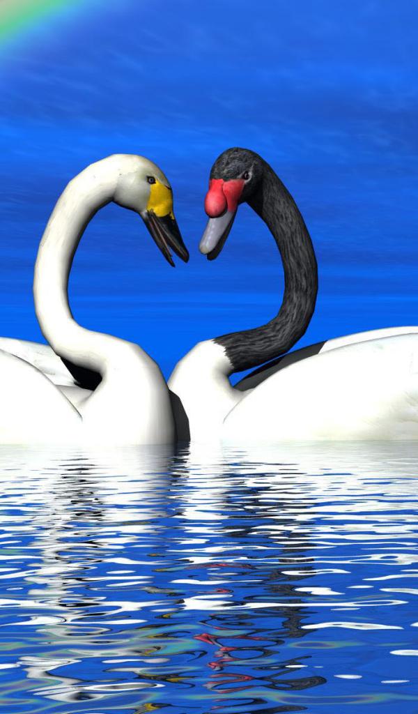 Wallpaper Loving swans