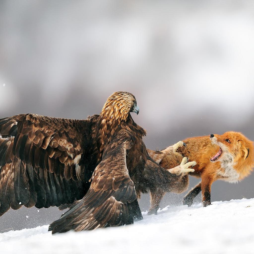 Wallpaper The eagle was attacked by a fox