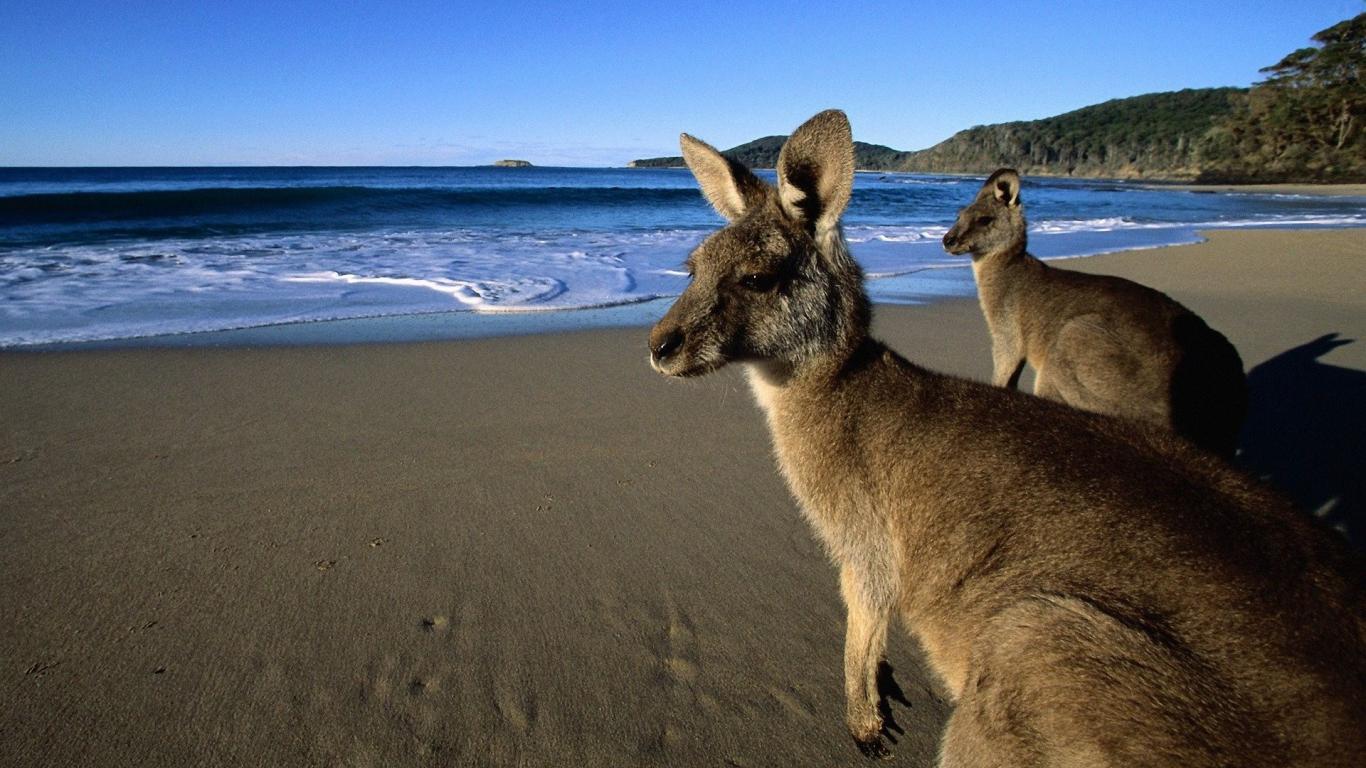 Wallpaper Kangaroos come to the beach